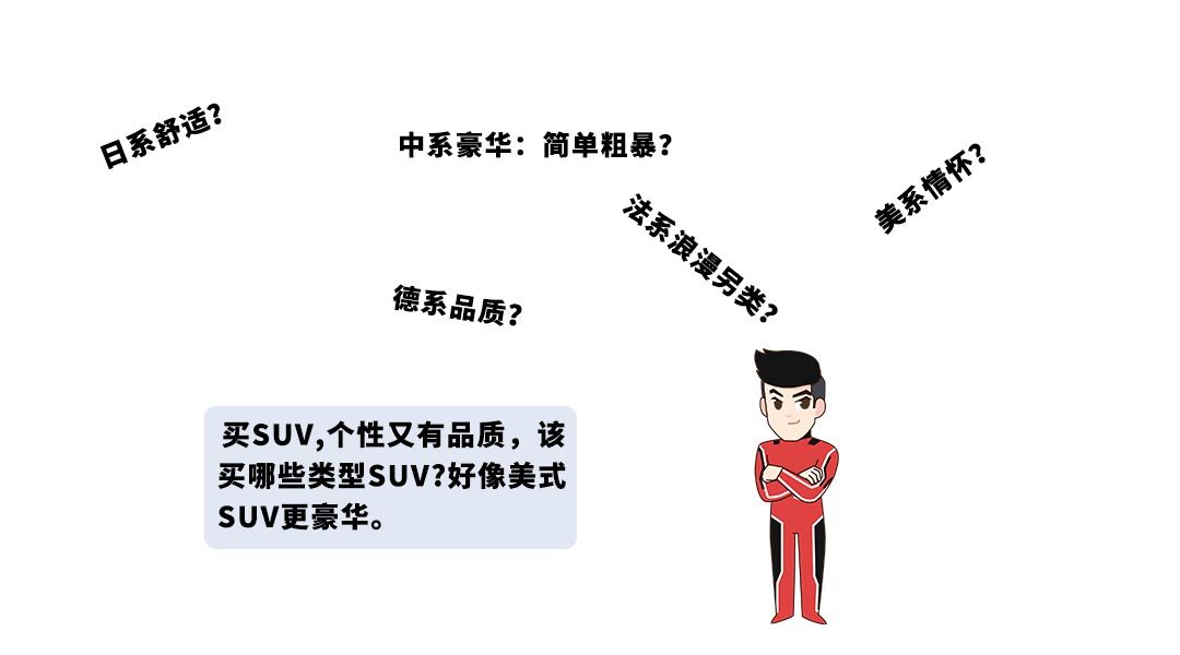 这样的问题,相信很多消费者在持币待购的时候,是经常会碰到的问题之一。车犹如人一般,车的某些设计元素等也正是代表了设计师的缩影。在大众的普遍认知中,法系车型另类浪漫,不拘泥;日系舒适,家用最佳能手;中系车型的简单粗暴。对于多如浪潮的SUV,是跟随大众,还是服从内心想法?