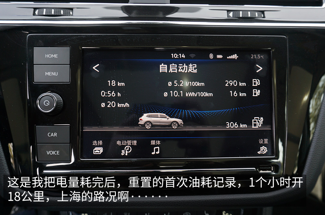 在这次的试驾体验中,教授做了一件特生活的事情——上车即用纯电动,先赶紧把电量祸祸完,再去看没电的情况下,油耗表现如何。生活中,我知道太多插电混动车主其实没充电的地方。地库物业不让装,每天去找充电桩不现实,就当油车开,爱咋地咋地。在这样的情况下,一天200公里,大多是城市路况,最后离车时显示5.8L的油耗,相对于普通的大众EA211 1.4T 这个数据还是要漂亮一些。