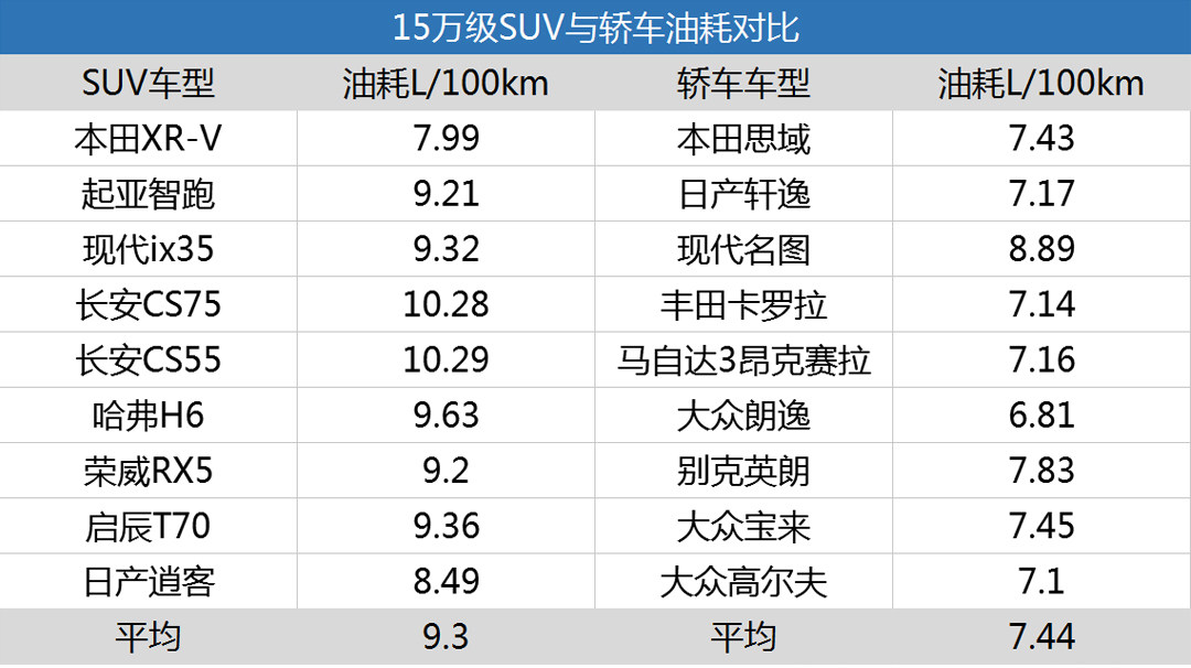 同价位SUV比轿车油耗高出将近2升↑↑↑