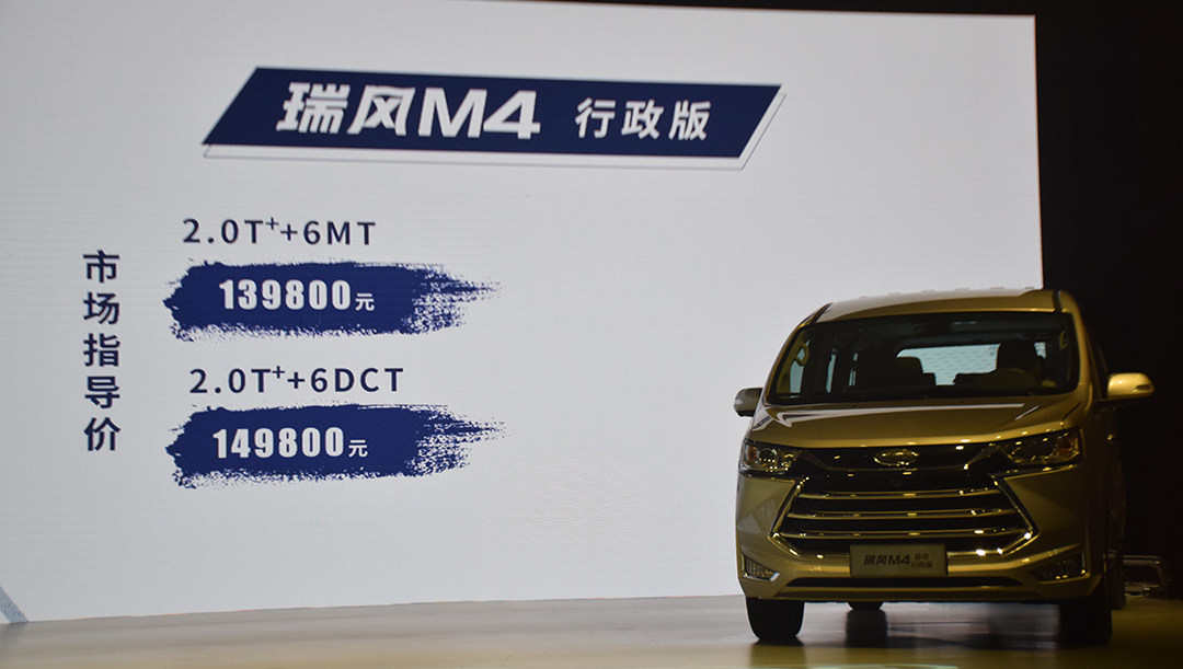 两年前,广州曾见证瑞风M4的诞生,两年后的今天,瑞风M4再次选择广州首发推出,并带来了两款被视为“升华之作”的行政版车型,分别为售14.98万元的瑞风M4自动行政版以及售13.98万元的瑞风M4手动行政版。新车主要在动力、造型、舒适三大方面进行了价值升级。