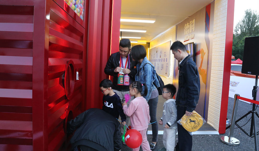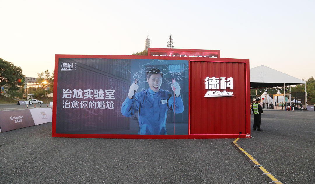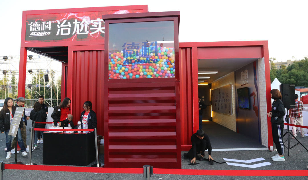 展台用德科speed line的经典红+集装箱概念,