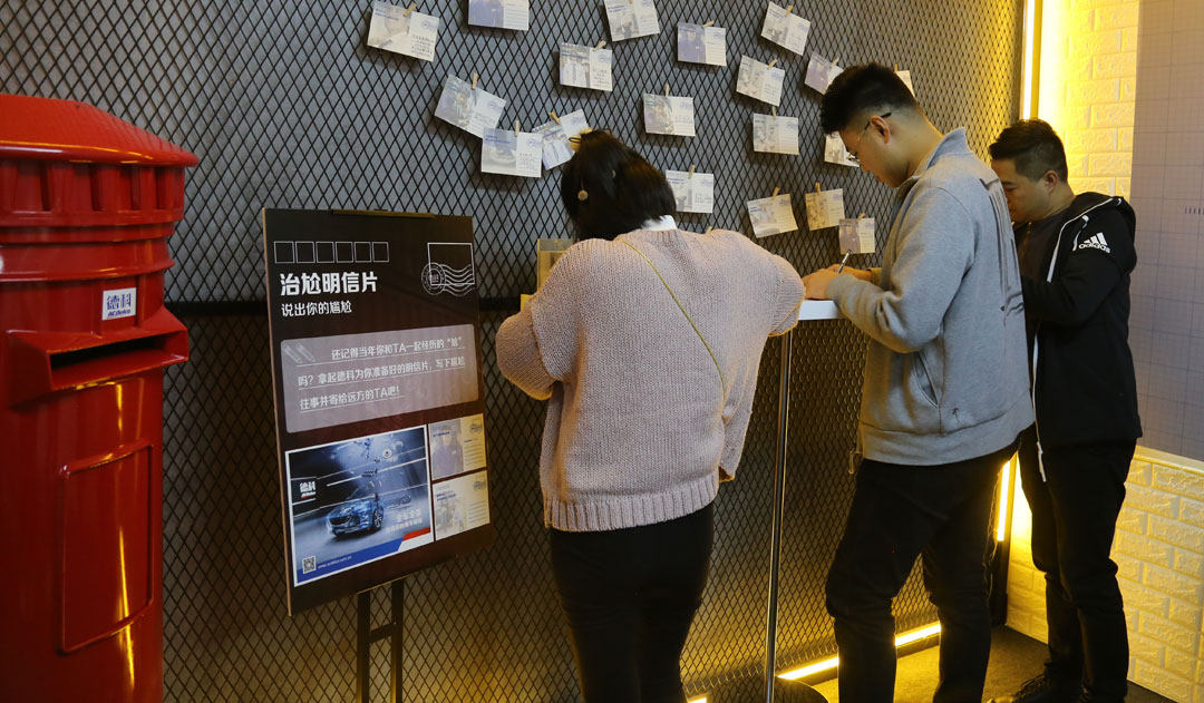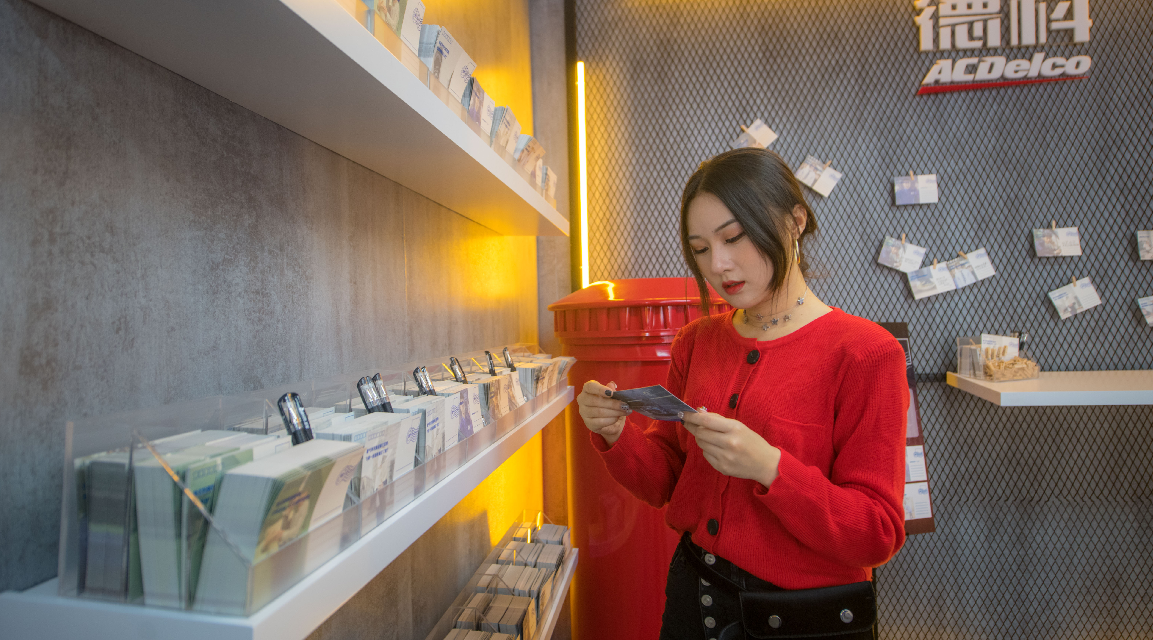 现场的邮筒和明信片,