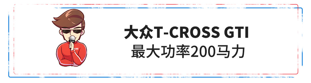 大众T-Cross GTI与Polo GTI共享MQB A0平台。搭载同款2.0T涡轮增压发动机,最大功率147kW,峰值扭矩320N·m,匹配6速手动或者7速双离合变速箱。新车比起普通版车型来得更运动、酷炫,采用熏黑处理的前格栅设计、GTI车型的经典红线元素。