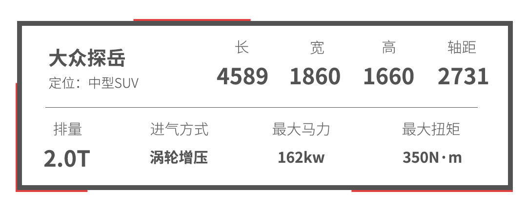 探岳的售价区间是18.88万-31.98万,比途观L便宜不少。当然啦,探岳的车身尺寸也缩水不少,探岳的车身尺寸是4589*1860*1660mm,轴距为2731mm。需要吐槽的一点是,探岳号称中型SUV,再一次刷新了中型SUV尺寸的下限。好在,价格还是紧凑的。