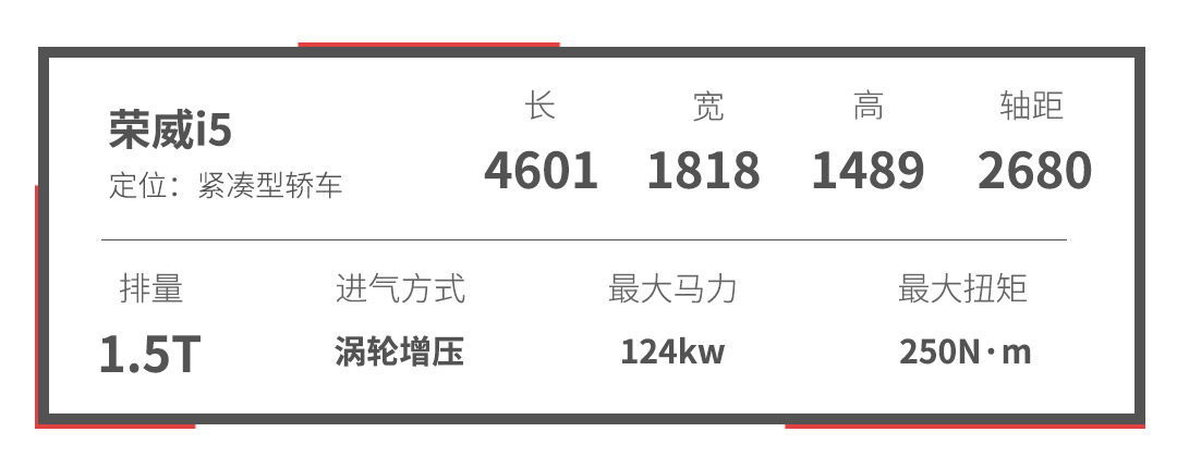 如果说荣威i6尺寸太大,有点靠A+级,那么荣威i5就完全是A级轿车。荣威i5的售价区间为6.89-11.59万。而且荣威i5的车身尺寸为4601*1818*1489mm,轴距为2680mm,同样也非常的A级。