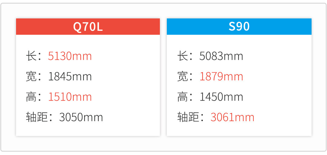 两款车型进入国内后均进行过加长处理,Q70L的车长明显比S90长不少,但在轴距反而不够S90长。对于后排感兴趣的朋友可以直接往下看。