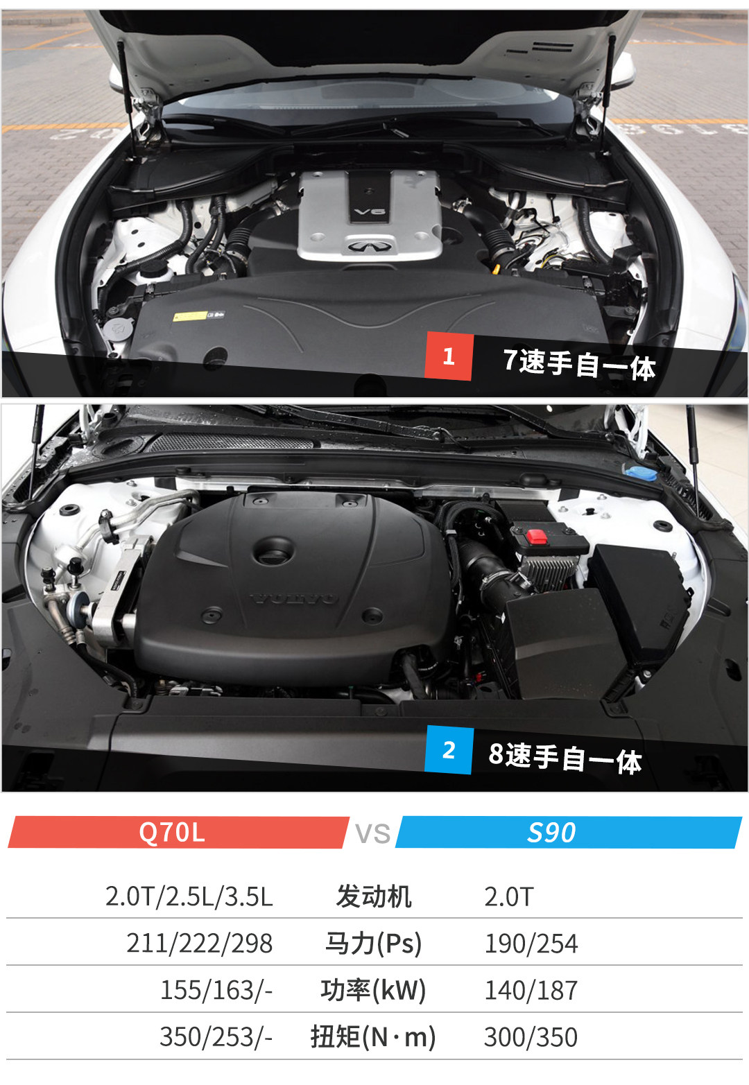 在动力总成的匹配上,两者的思路完全不同。Q70L全系自然吸气V6发动机,高配采用3.5L发动机+68马力的电动机组成的混动系统,传动系统方面全系都是7速手自一体变速箱,但教授相信,国内购买Q70L的消费者,2.5L车型绝对占大多数。
