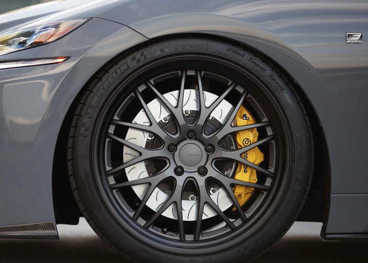 水泥灰色全车改色膜、22英寸的暗金色Work轮圈、车身有所下降、Brembo出品的高性能制动系统、黄色涂装的大尺寸刹车卡钳、前后刹车盘直径分别达到了403.8mm和381mm,改动不算明显,但是一点一滴堆起来显得特别有范儿!你心动了吗?