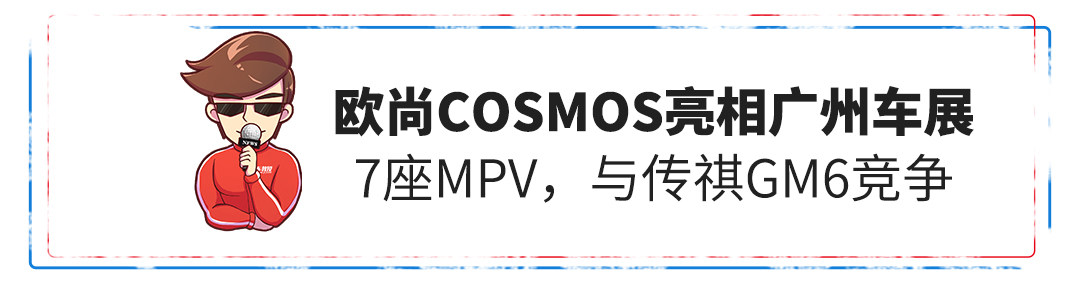 全新7座MPV——COSMOS是继欧尚COS1°之后,欧尚汽车的第二款车型,计划在11月份的广州车展中正式亮相。新车外观造型方正,前脸的点阵式格栅设计搭配犀利大灯,稍显个性。采用2+2+3的座椅布局方式,灵活性还不错,方便第三排乘客出入。至于动力方面,新车有望搭载1.5T涡轮增压发动机,最大功率115kW。目前,关于新车上市的时间还没确定,从已知的消息来看,新车上市后将与传祺GM6等国产MPV车型有较直面的竞争。