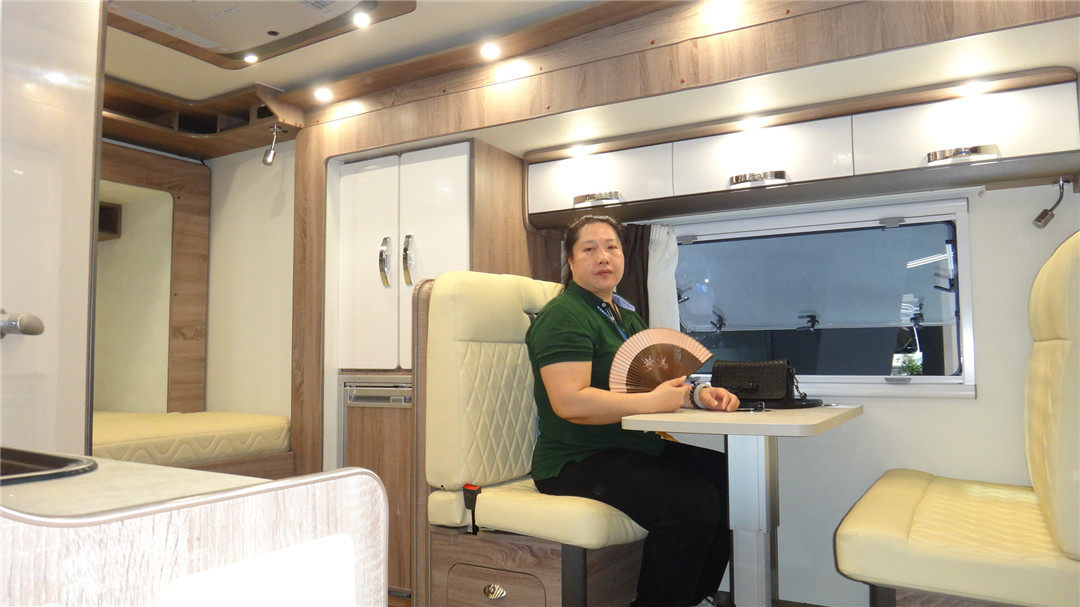 豪华取向的改装房车绝对是本次展会的主角之一,它们的特点是驾驶舱与乘员舱进行了隔离,有的车型还加长加高,并且乘员舱内饰氛围和配置都极其豪华,带按摩功能的独立航空座椅、酒吧台、通讯和娱乐系统都是标配。