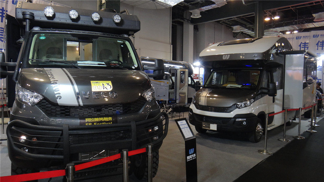 旅居车是本次展会的另一大主角,它们大都拥有床铺、会客桌、厨房、厕所、浴室等完善的生活设施,能承担3到6人的户外起居出行,并且分为了越野型和公路型两大类。