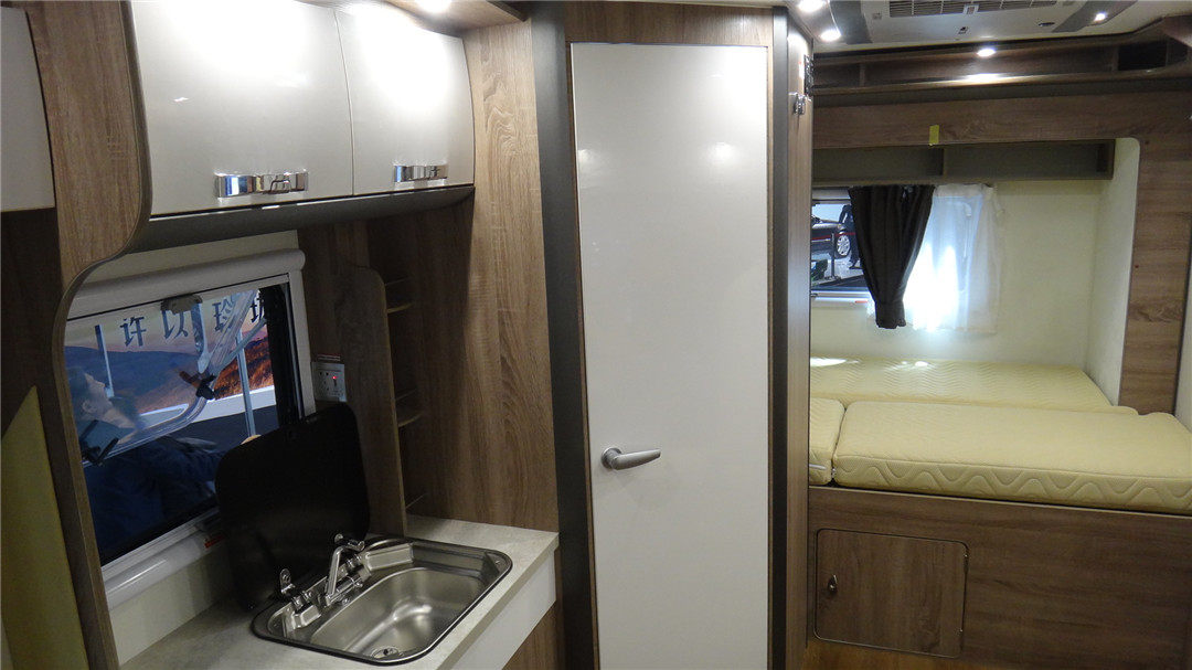 无论公路型还是越野型旅居车,大都是用依维柯欧胜的平台为基础打造,其中一款公路型旅居车,生活舱可以内外伸缩,开车的时候缩回去,停车时打开,很好地利用了空间。