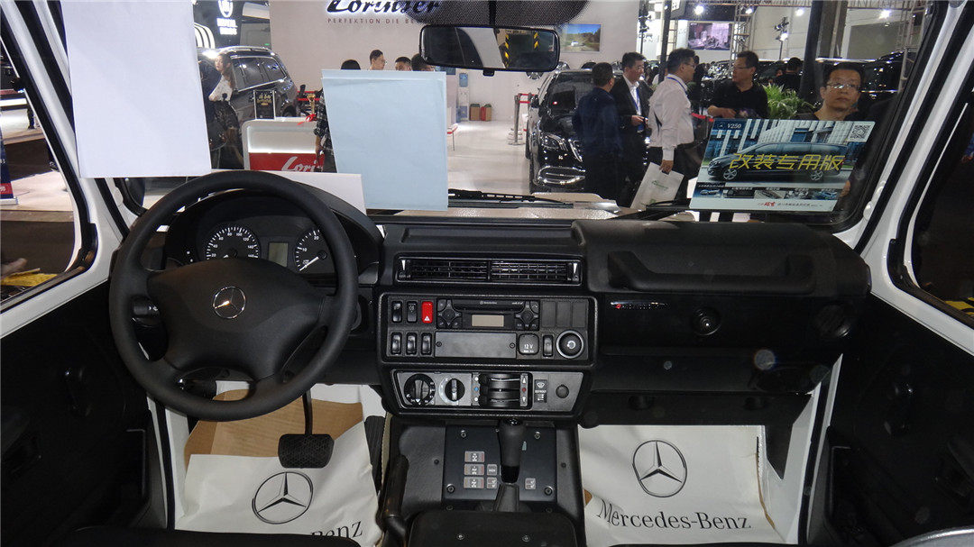 这辆奔驰G300柴油军用版虽不是改装车,但令教授印象十分深刻,与我们常见G级的豪华取向外观内饰设计不同,G300军用版的外观充满了军事feel,配备了高位涉水器、大面积塑料外壳后视镜、大扁平比越野轮胎和前后钢制保险杠。
