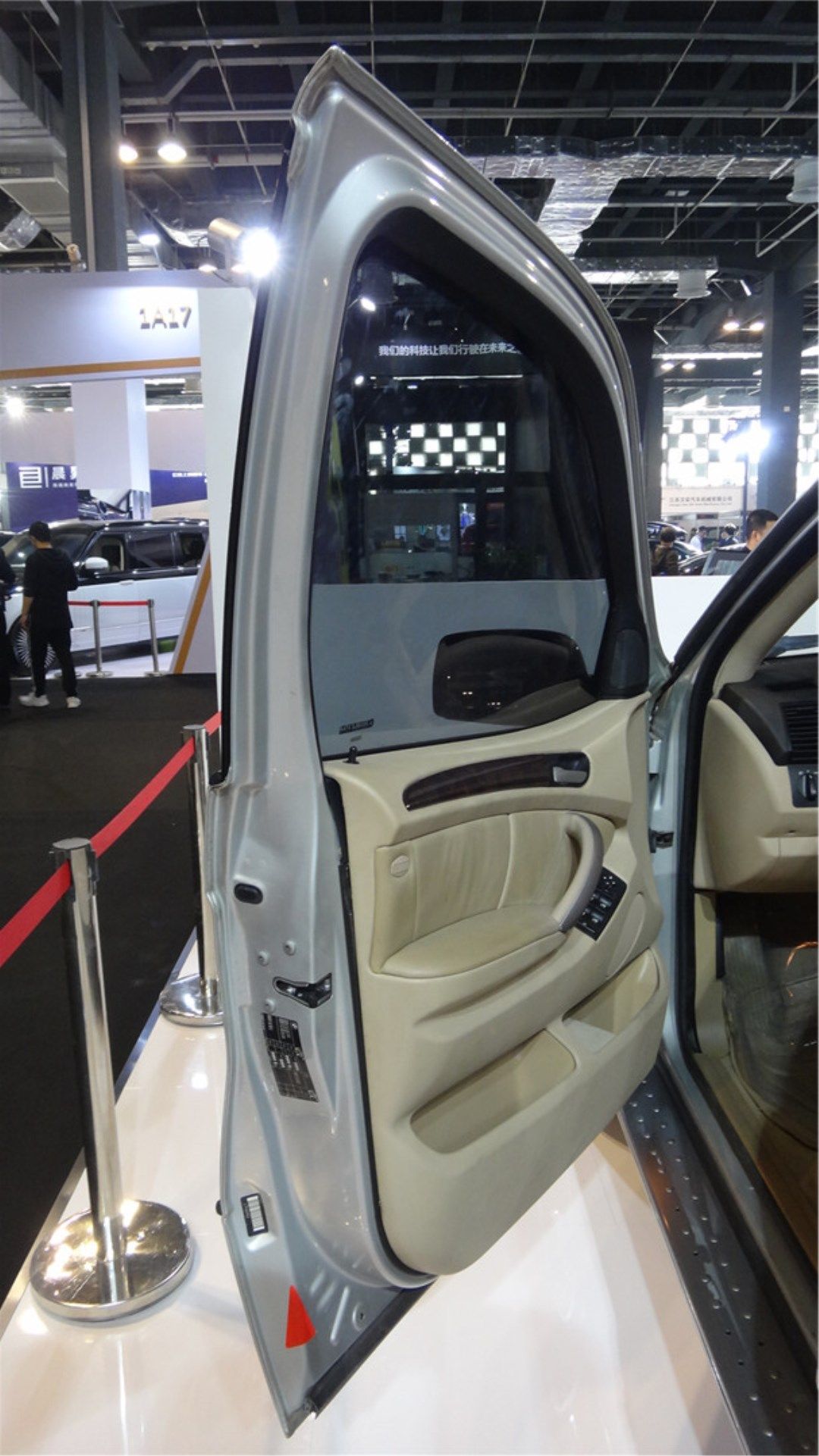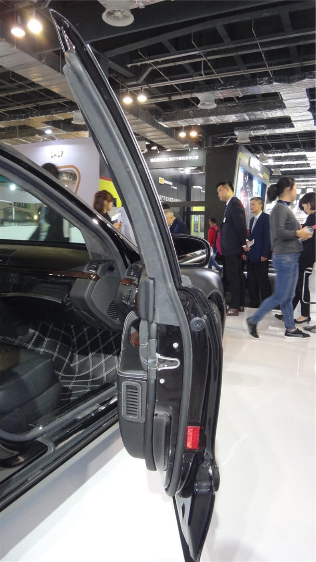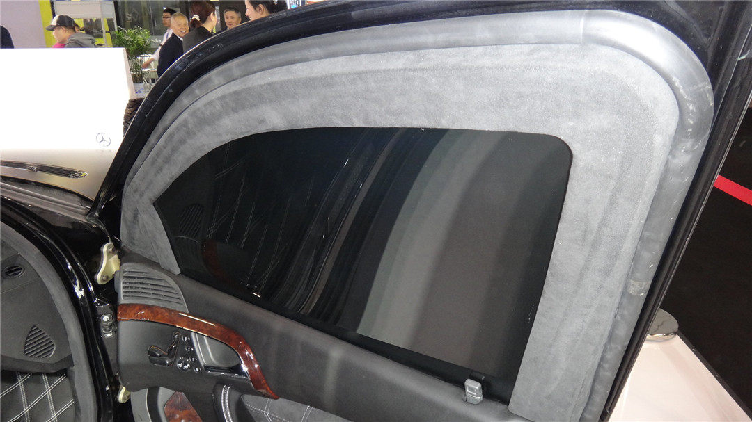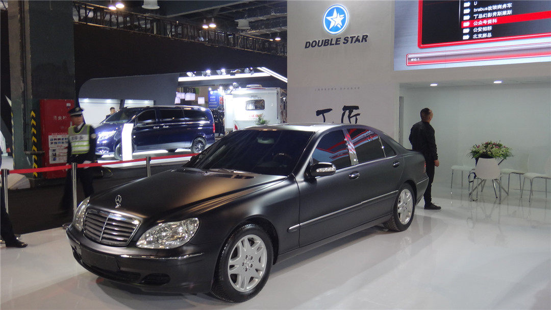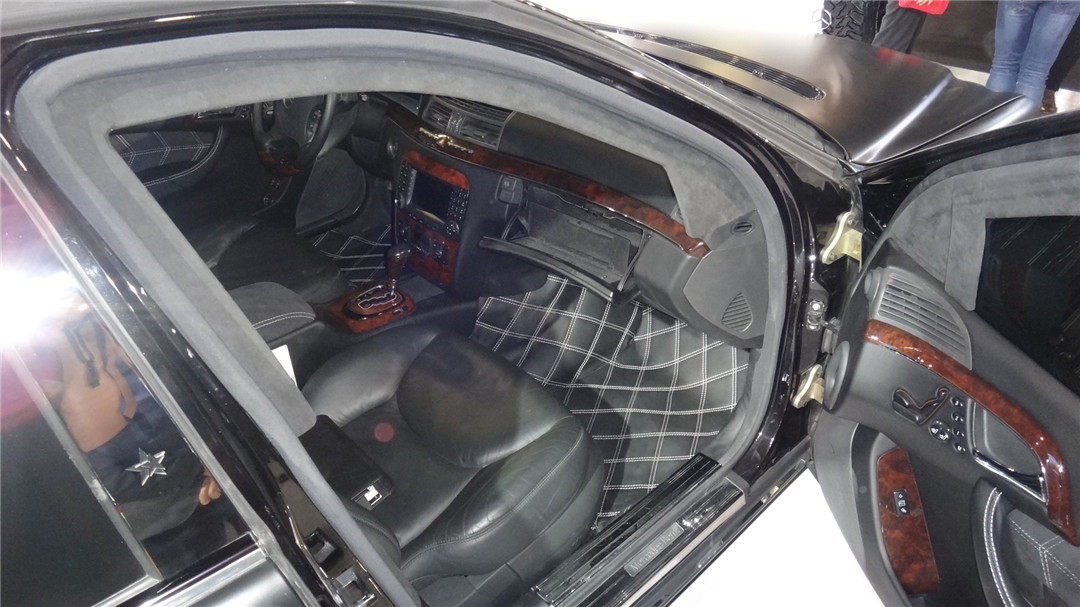 本次展会,上海星星公司带来了全场唯二两台防弹车,其中奔驰S级防弹车达到最高的B7级别,最多可以抵御7.62x51mm北约钢芯穿甲步枪弹的直接射击,还能抵御小当量炸药、手雷和燃烧瓶在车底或车顶爆炸,因此我们可以看到车门十分厚重,车门铰链比一般汽车要强壮得多,门缝窗缝等较为脆弱的位置也做了防弹加强处理,保证乘员舱360度的安全。