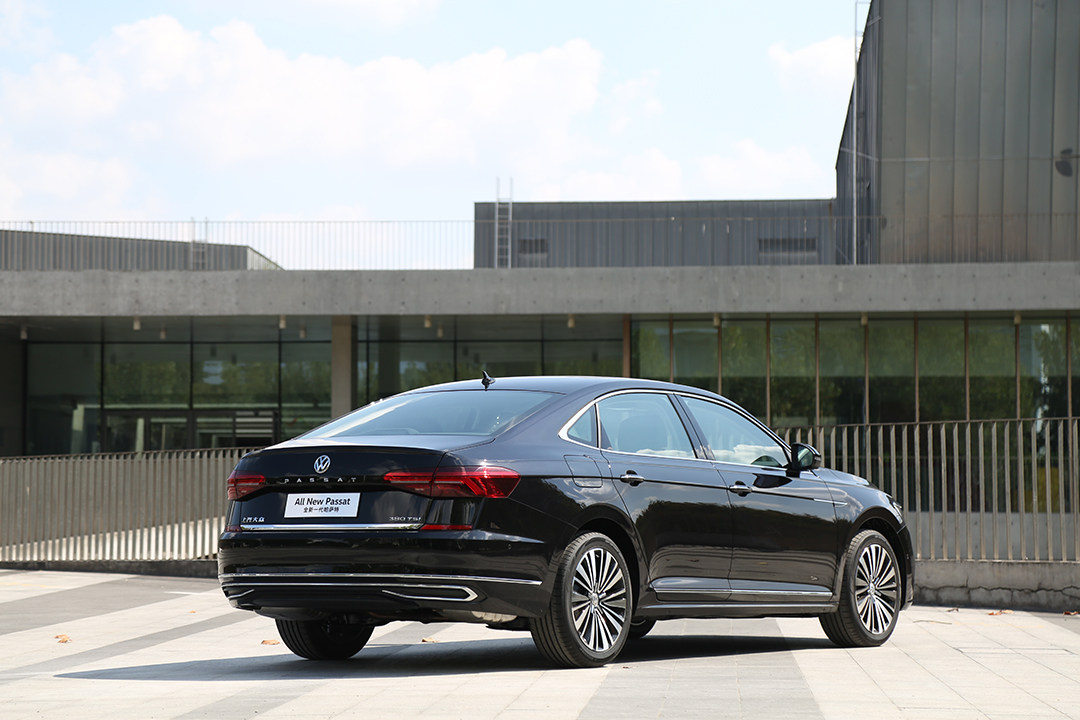 从侧后方看,全新帕萨特的尾箱盖上有一点鸭翼的造型,给朴素的车尾带来了一些动感的效果,同时车名也和辉昂一样放在了尾部中间,在加上密幅的18寸轮毂,用最简单的语言描述就是提升了整辆车的气质。帕萨特面向的客户群体与迈腾还是有一定差别,它需要营造的感觉还是要偏商务一些,我们所习惯的夸张线条,溜背曲线这些在全新帕萨特上还是表现的比较收敛,对了,在关键的尺寸上,全新帕萨特有那么点越级的意思。