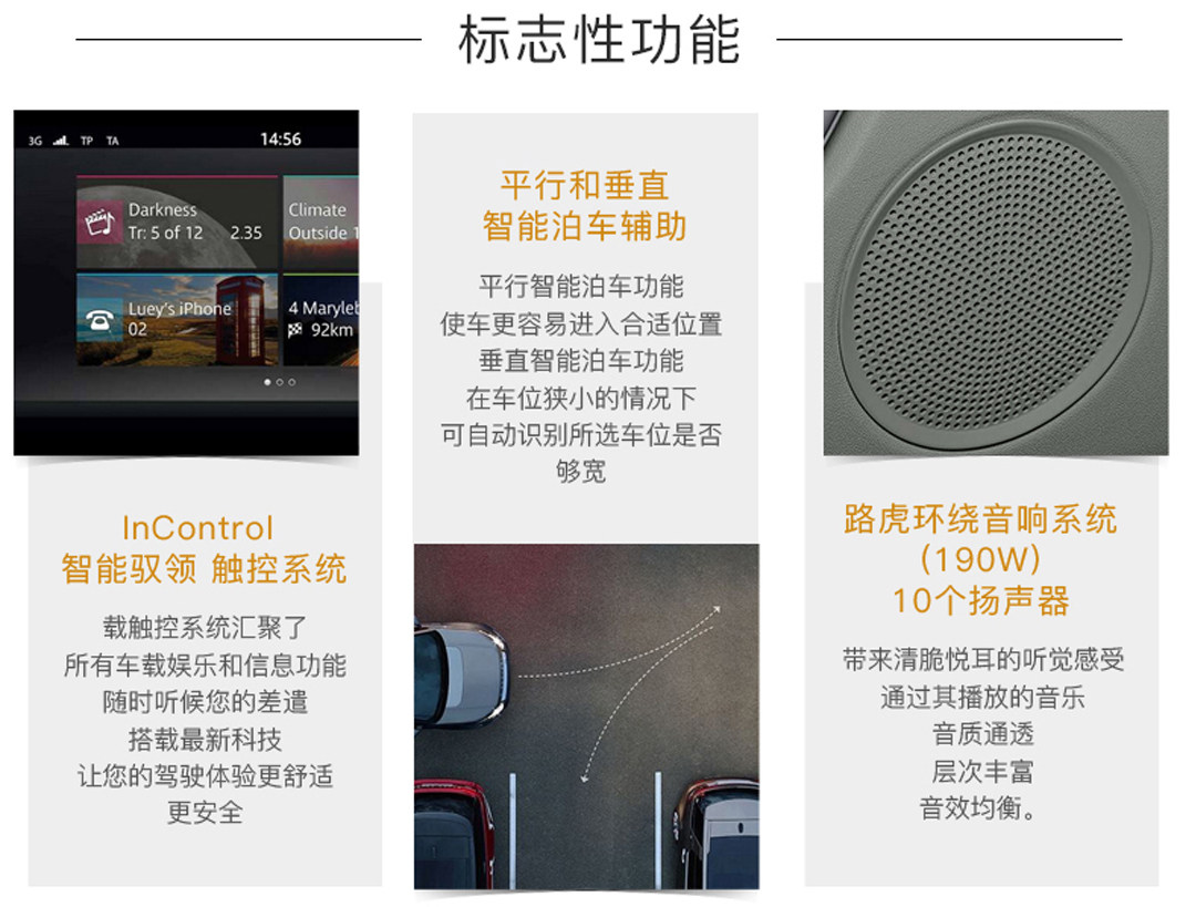 加上发现神行具备路虎环绕音响系统,功率为190W、10个扬声器,中控屏搭载InControl 智能触控系统,汇集了丰富的车载娱乐和信息功能。它还为驾驶者准备了平行和垂直智能泊车辅助系统,在紧缺车位的城市中仍能让车主便捷停车。