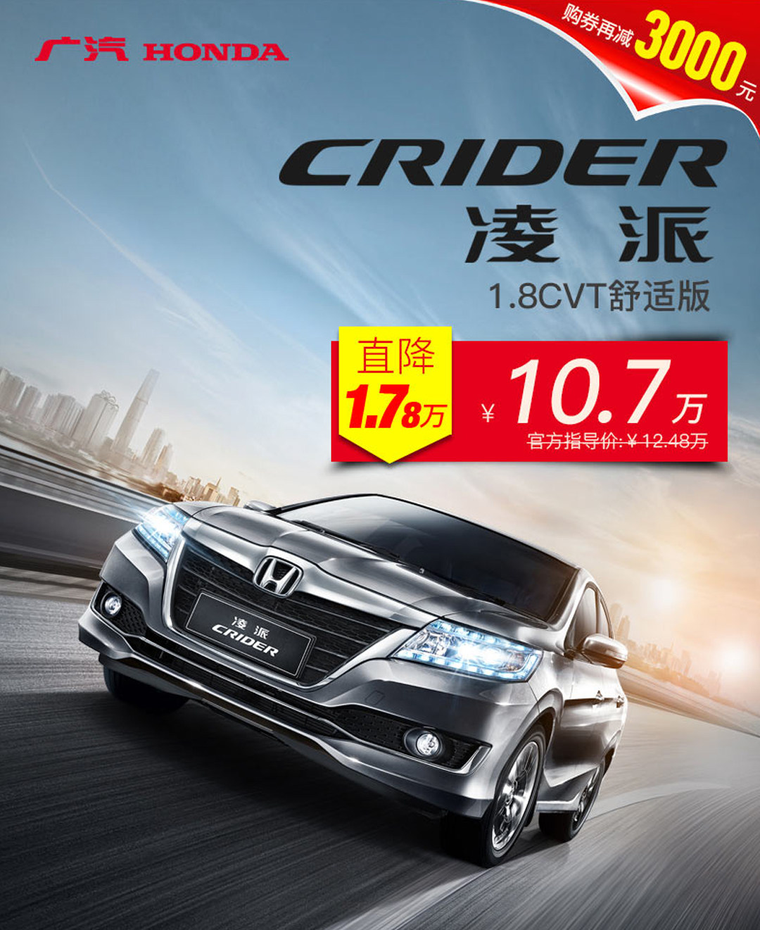 家用档次感强、空间相当充足的广汽本田凌派 2016款1.8CVT舒适版车型现金直降1.78万,优惠幅度绝对空前!而且线上支付999元订金 ,购券再减3000元;十万元油卡大放送(前40名下订送1000元油卡,41-100名下订送500元油卡,101-200名下订送300元油卡)。