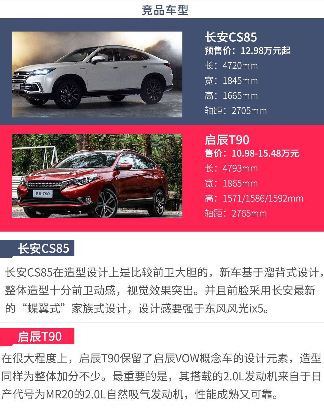 在跨界SUV车型上,自主品牌也有很多车型涉及到。举个简单的例子,启辰T90,在初期阶段,T90也确实受到短暂的热捧,随后热度慢慢下降。相比于豪华品牌来说,自主跨界车型的路更难走,其中,品牌沉淀是关键。对于刚上市的东风风光ix5和即将上市的长安CS85,是否能够摆脱这种局面呢?还得拭目以待!
