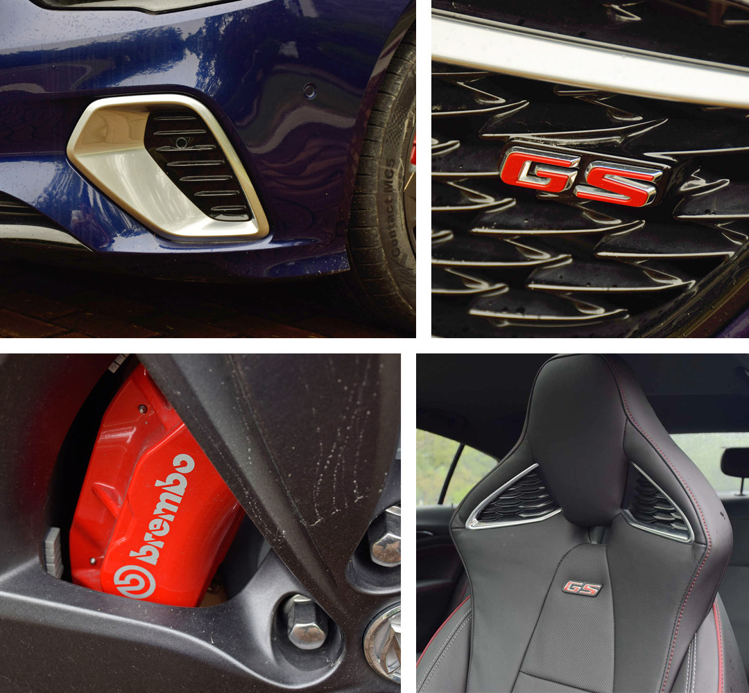 与传统的君威相比,君威GS的造型更加具有攻击性,前脸左右两侧的进气口仿佛张开了一般,在大口大口的吸进空气,还有鲜艳的Brembo刹车钳、一体式运动座椅和车身上的“GS”标识等,都突显了这辆车是为运动而生的。