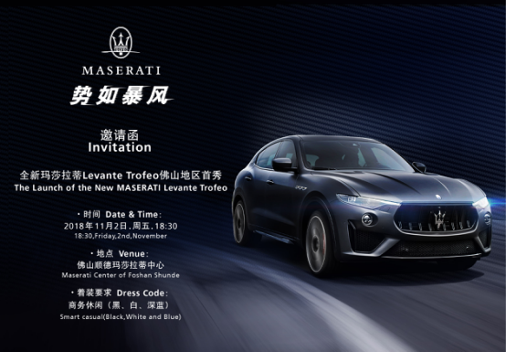 发布会地址:佛山市顺德区伦教街道顺德玛莎拉蒂中心展厅(周大福旁)。