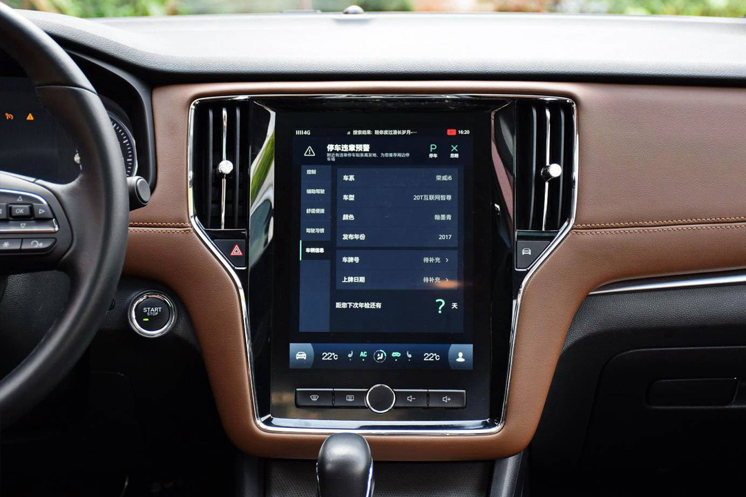 荣威i6的车内也是档次感满满,它的造型风格和荣威RX5高度一致,大尺寸的中控屏显示效果比较细致,而且也提供了大面积的皮革包裹,在细节处都提供了镀铬装饰,所以整体的精致感真的很突出!