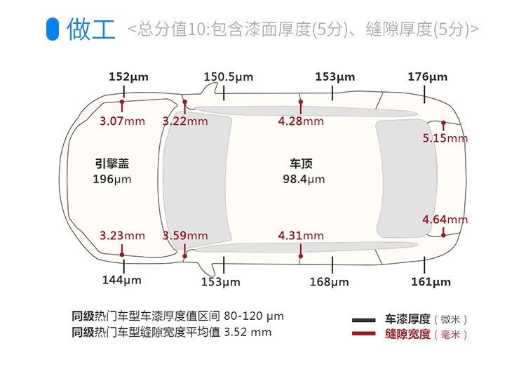 锐界的漆面不仅厚度比较厚,而且也十分均匀,现在有这样表现的车并不多,锐界的喷漆水平值得称赞,钣金缝隙虽然不算小,但是对于这个级别的车来说还是不错的。