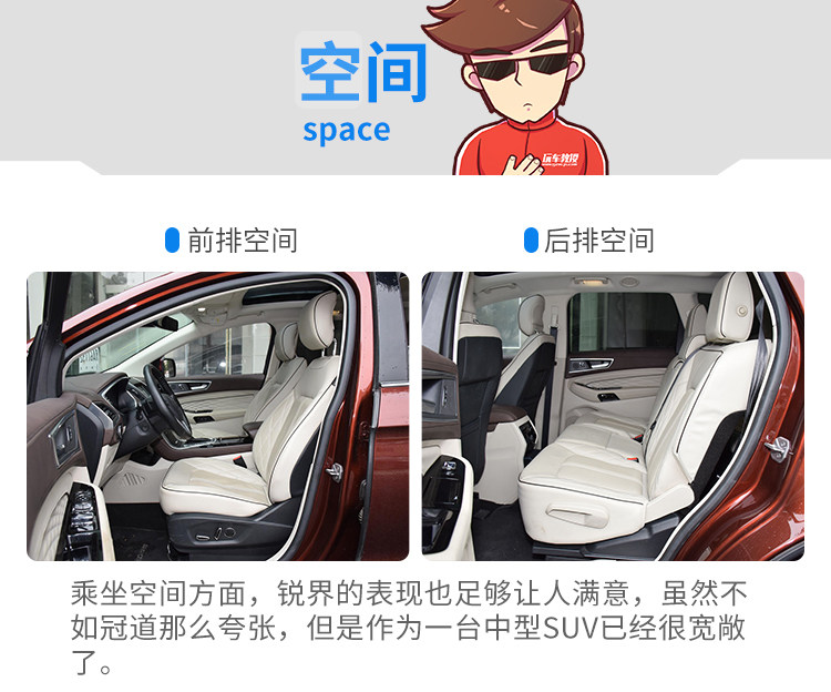 虽然锐界在长度方面优势不大,不过2850mm的轴距还是比对手强不少了,这种优势也直接体现在车内空间上。