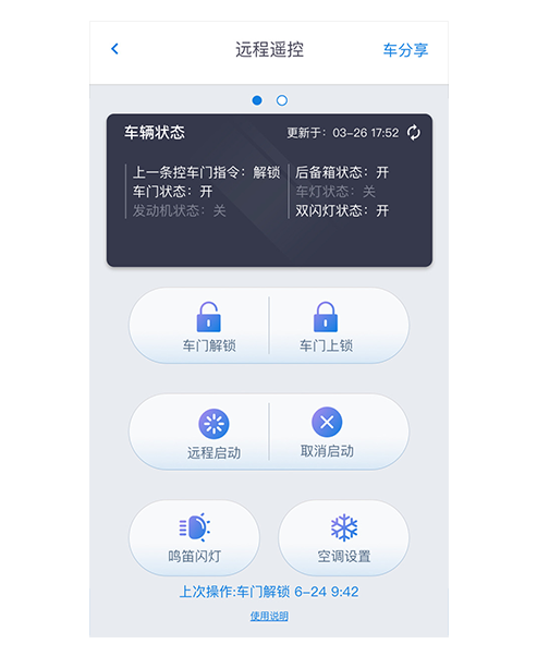 当然功能还有很多,比如在偌大的停车场把车停好后,回来却发现忘记了将车停在哪里,这时候可以先用车辆位置功能找到车的大致方位,再打开闪灯鸣笛功能就能更准确找到自己的车,找车非常轻松;“电子围栏”用作车辆防盗提醒功能,也大大保障了车子的安全。
