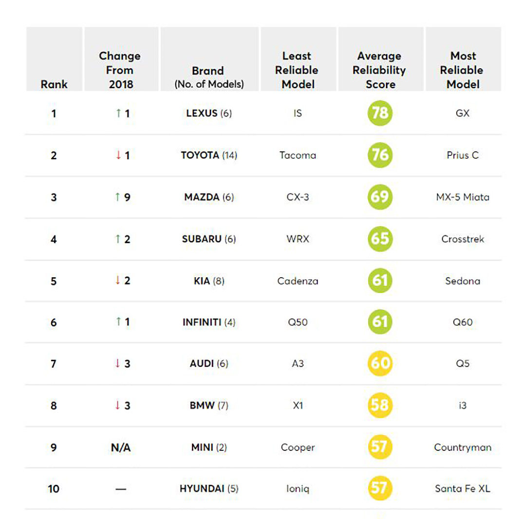 近日,美国权威消费评测组织ConsumerReport消费者报告,根据自身用户以超500,000辆车为样本,做出《2018年汽车质量报告》,那么哪十个品牌会是质量的TOP 10呢?