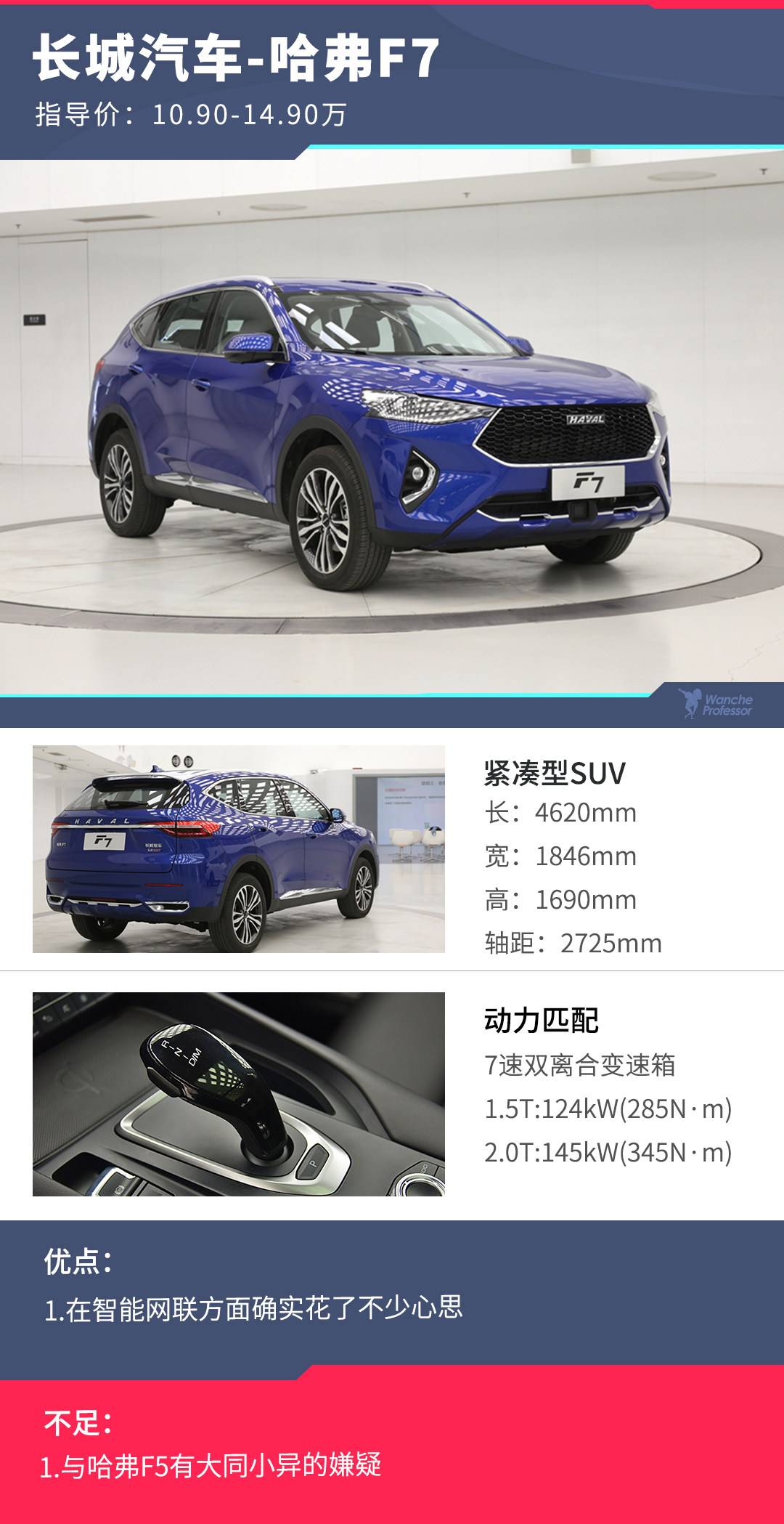 11月6日晚,哈弗F系列旗下第二款车——F7正式上市,此次共推出六款车型,其中包括1.5T四款车型,2.0T两款车型,售价区间为10.90-14.90万元,新车定位于紧凑型车SUV。与今年9月发布的F5一样,“H系代表着现在,F系则意味着未来”,整体风格遵循年轻运动化思路。作为哈弗F系的旗舰车型,F7拥有不错的智能科技产品力以及智能化应用水准,体现了产品的AI属性。看得有点心动?就让教授告诉你买那款最超值。
