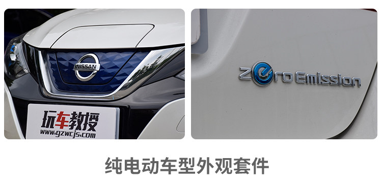 轩逸·纯电的前进气口换成了充电口,是封死的,可以在高速的时候降低风阻。除此之外车上也有几处Zero Emission的标识。