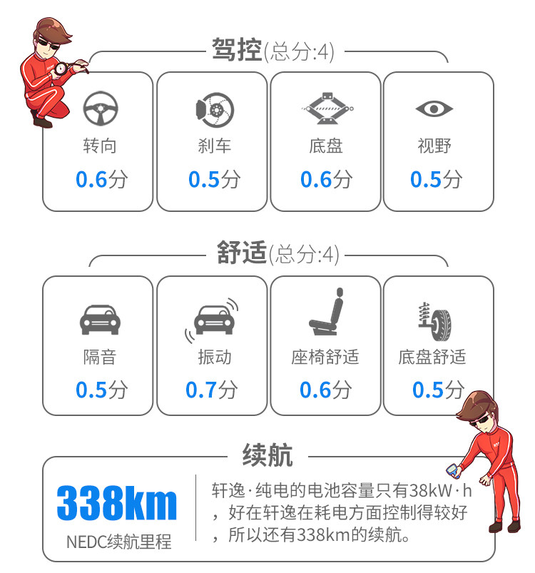 总结:轩逸·纯电表面上看没有给人太多的惊喜。但是,日产聆风成为世界最热销的纯电动车不会是无缘无故的事情。轩逸·纯电的出现或者给国产纯电动车一个警醒,是否不再以长续航为唯一目标,将续航、动力、电耗、驾驶性等各方面综合一下,推出一款更加平衡的车型?