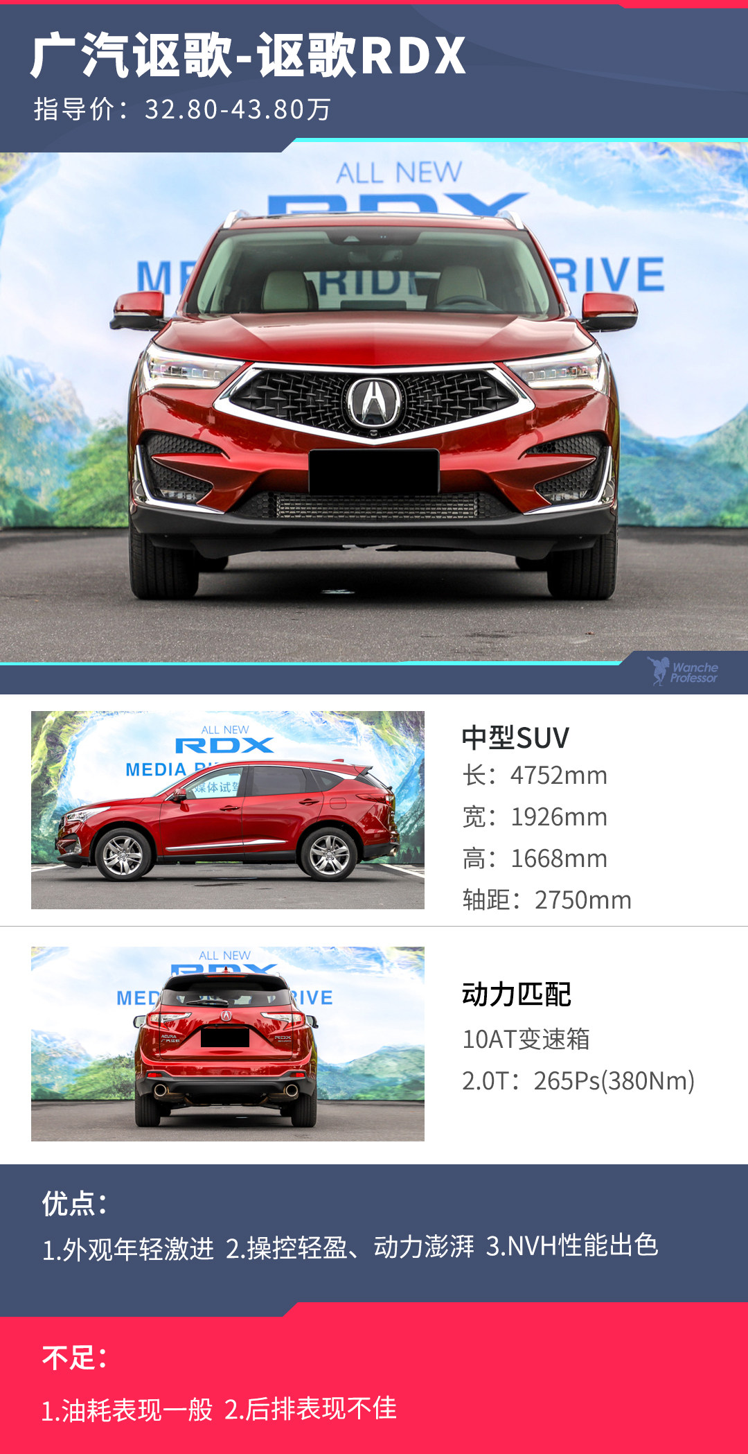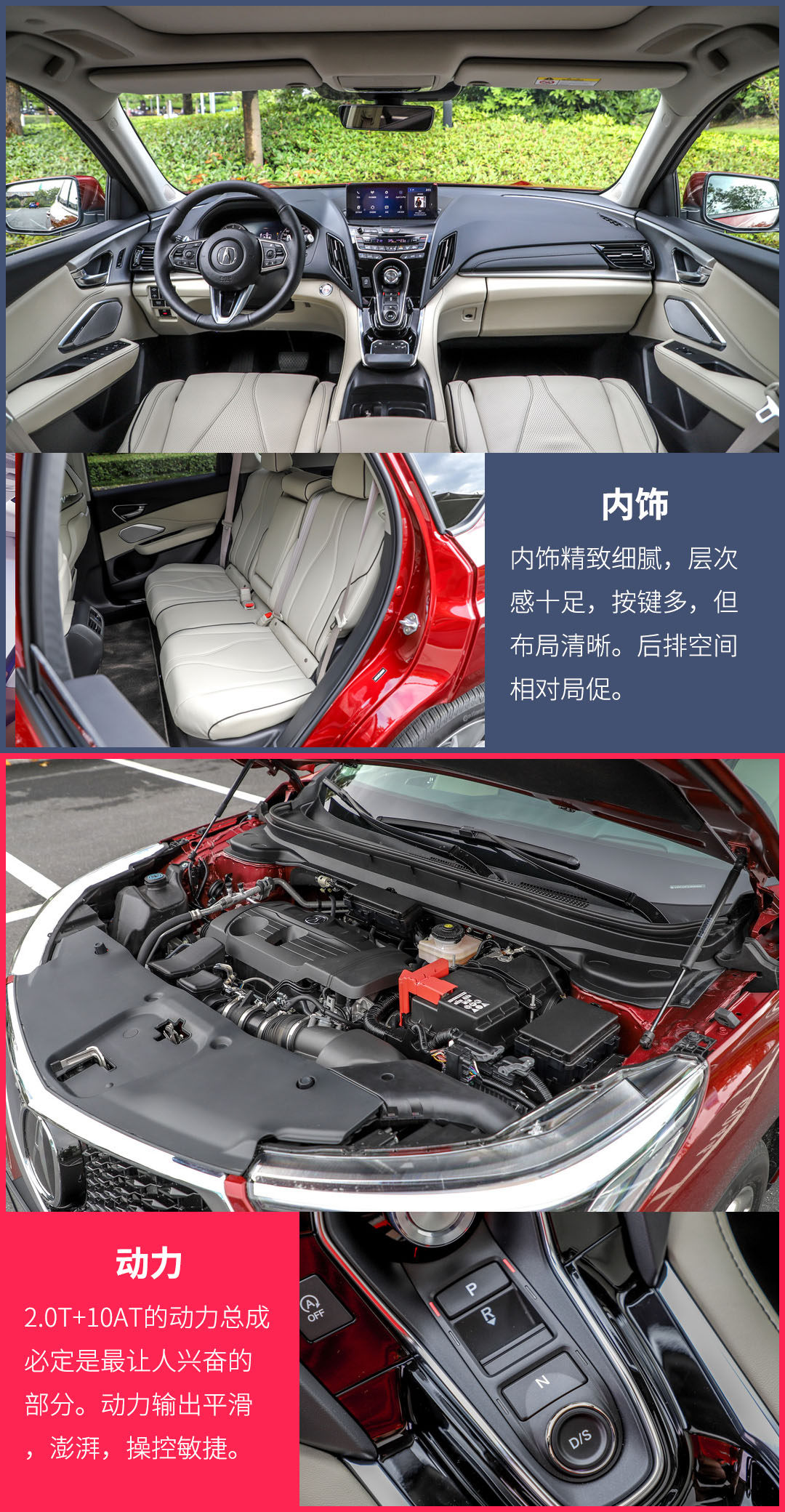 相对于竞品车型,其实RDX的动力系统,配置,起售价,都是较为优势的方面,要说最大的不足应该就是后排了,根本无法和那些加长轴距的竞品比较。