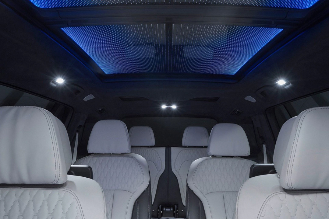 令人惊喜的是,宝马X7不仅加入了内饰氛围灯,当氛围灯亮起时,大尺寸的全景天窗也会呈现出星空效果,进一步提升奢华质感。