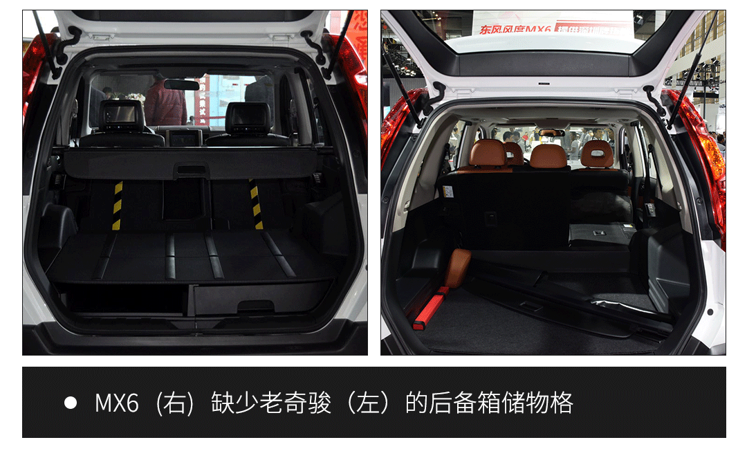 风度MX6的外观让人感到似曾相识,没错,其实他就是换标的日产上一代奇骏。也正因为如此,MX6用的就是老奇骏的生产线生产,由内到外除了车标几乎都一样。外观和老奇骏一样硬朗方正,满足了那些有情怀的消费者。