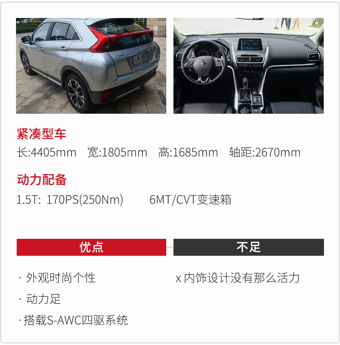 奕歌延续了XR-PHEV Ⅱ概念车的设计风格,采用“Dynamic shield”最新的家族式设计。时尚精致个性,可以从多个方面可以看出,例如修长大灯、横贯式尾灯、双天窗构造等等。但内饰就相对朴素了点,好在内饰用料较为厚道。1.5T双喷射涡轮增压发动机,在性能上、排放性、质量可靠性上都有很大的亮点。