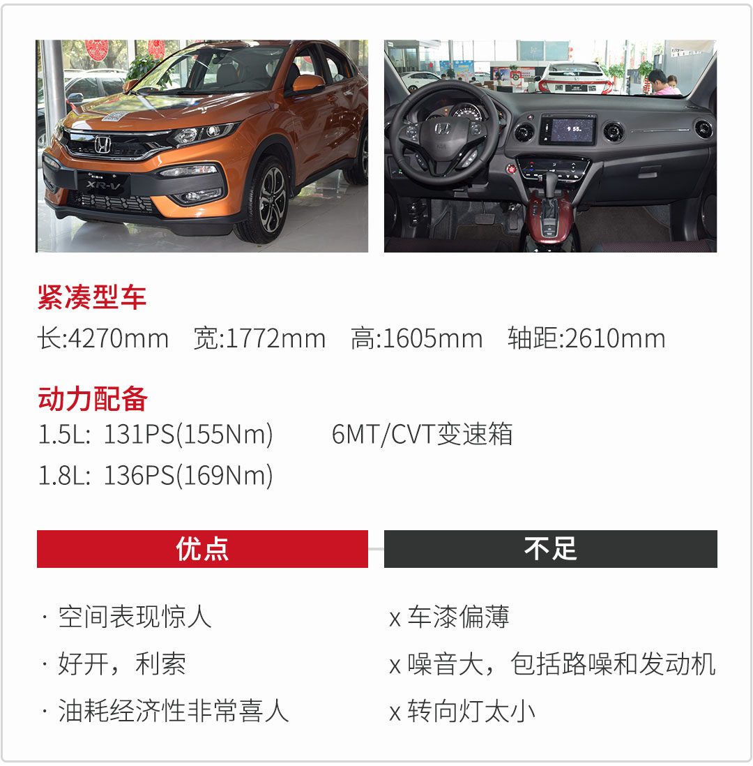 除了以上三款“新兵”之外,还有XR-V这款老将,尺寸及价格更加紧凑、更加亲民。
