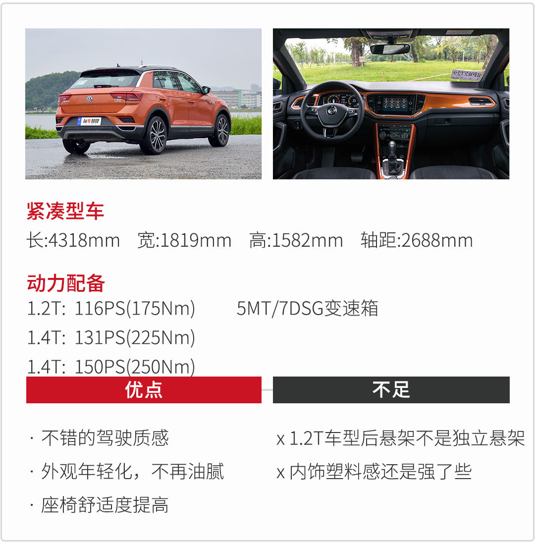最后说说三大件这一方面,探歌基于MQB-A1平台下打造生产。共有1.2T、1.4T两种高低功率共三款动力;而传动方面则匹配5MT和7DSG变速箱,在三大件上,都是非常成熟可靠的。值得注意的是,在顶配的四驱车型中,变速箱有略微调整。虽都是双离合变速箱,但探歌顶配车型采用DQ381变速箱,利用技术来进一步改善驾驶时的平顺程度。