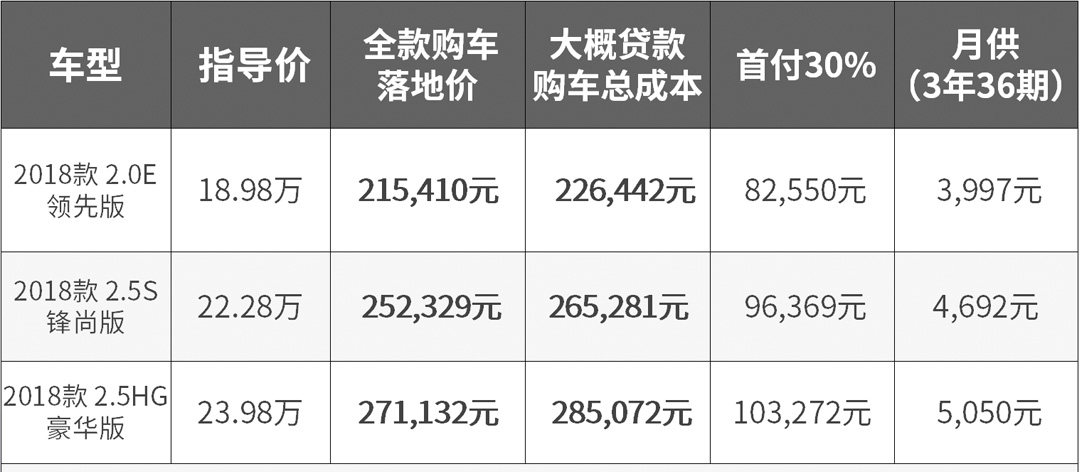 既然凯美瑞的各个排量等级车型都有不错的销量,那么教授就选择动力等级不同的3款特别有竞争力的车型,给大家分析购车成本。