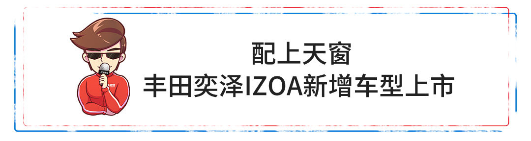 日前,一汽丰田为奕泽IZOA奕驰版、奕炫版提供了天窗这一配置,其中奕驰版天窗为选装项,奕炫版天窗为标配上,同时无论是选装或是标配,车价都有4000元的涨幅,选装天窗后的奕驰版车型售价为16.28万元,标配天窗后的奕炫版售价为17.98万元。天窗的加入理论上能提升车内开阳感,可惜的是该天窗并非全景天窗,因此对于提升后排开阳感的作用甚微,这个配置,还是按需选择吧。