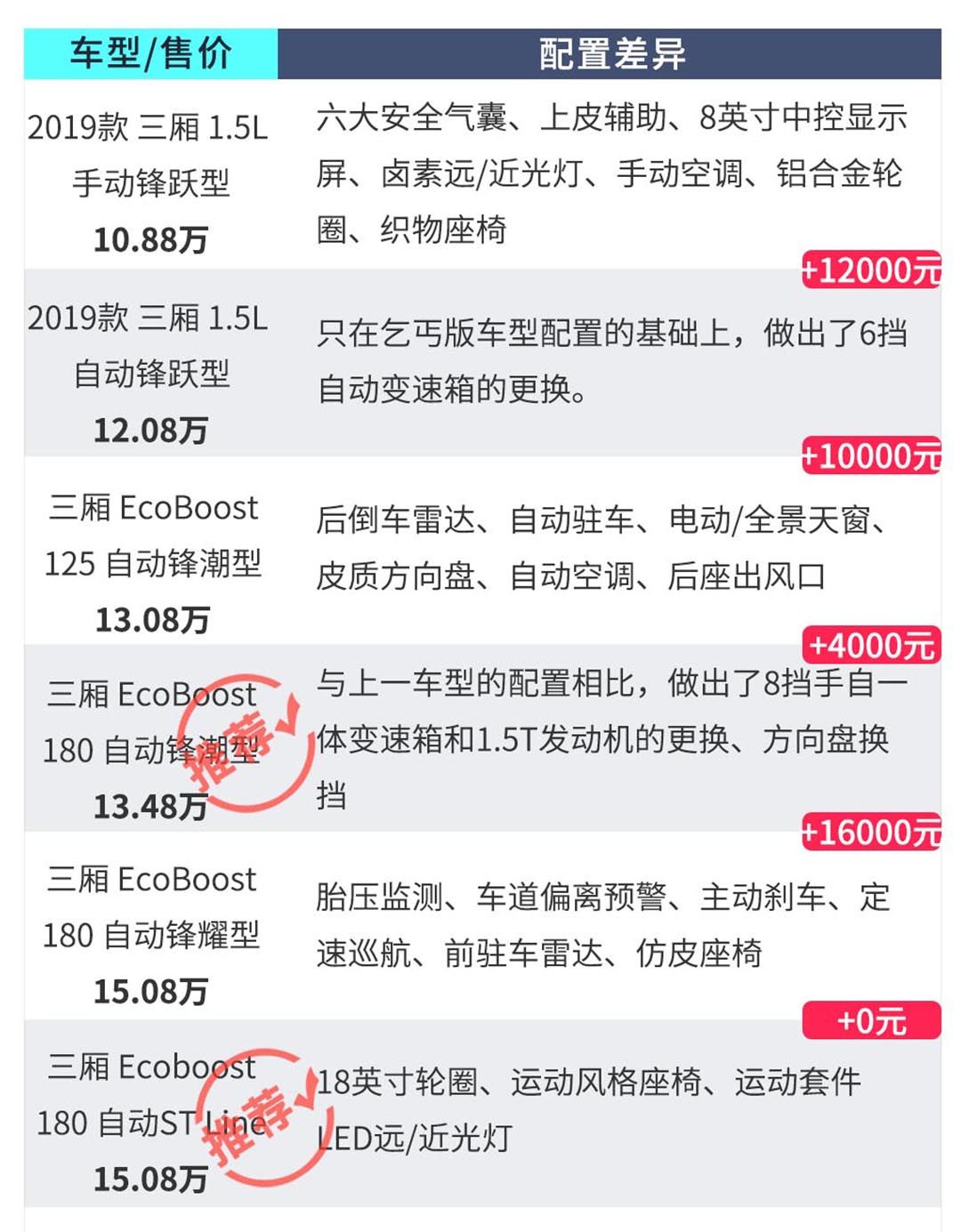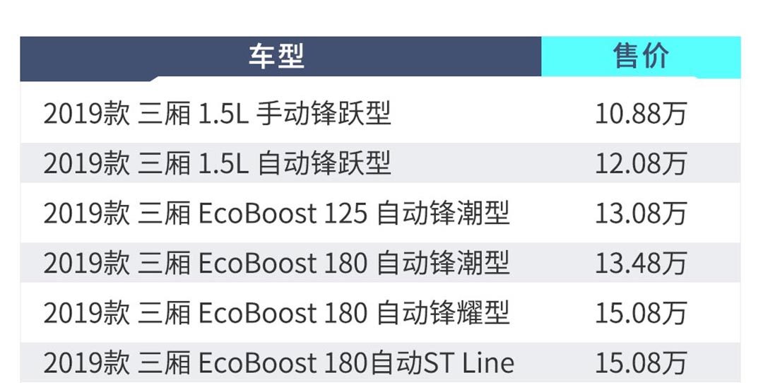 国六排放的迫近,各家车企都在绞尽脑汁想应对之策,玩三缸的,搞电动的,弄发动机的应有尽有。而福特就属于前者。新车搭载的1.5L、1.0T、1.5T三款发动机均是采用三缸结构。而且福特在这套三缸机子内做了很多“文章”,将抖动和噪音抑制在一个合理的范围内,同时8AT变速箱得益于档位数的增加,齿比更加绵密,燃油经济性和换挡逻辑都得到大幅度的提升。