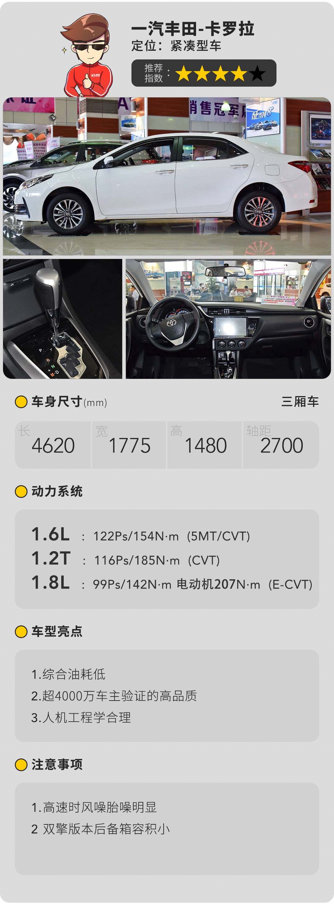 当然天下间没有十全十美的事,更没有十全十美的车。日系车型行驶噪音恼人的毛病同样落下在了卡罗拉身上,只是在如此优秀的品质面前明显是瑕不遮瑜的,而且后期还可以进行全车隔音的改装,当然这也是付出一点动力和油耗作为代价。