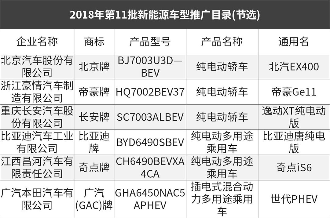 按照《关于调整完善新能源汽车推广应用财政补贴政策的通知》,自2018年6月12日起,2017年第1-12批及2018年第1-4批《新能源汽车推广应用推荐车型目录》废止。这意味着目前仅2018年第5-11批目录车型能够拿到新能源补贴,其中新能源乘用车624款,包括529款纯电动车型和95款插电式车型。