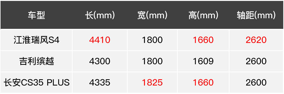 如果说吉利缤越和长安CS35 PLUS面临的挑战很大,而瑞风S4面临的挑战又何尝不大呢?因为暂时来看,瑞风S4所展现出的优势也就只是在乘坐空间方面,外观内饰拉不开差距,配置暂未确定,动力也没有说很期待。