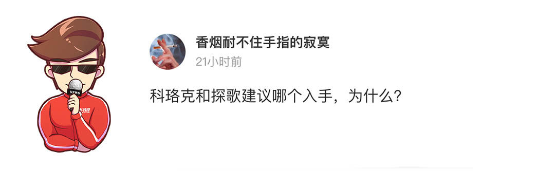 探歌和柯珞克均出自大众的MQB的平台,但两者的定位略有差异,探歌更贴近年轻化的消费者,而柯珞克更适合务实家用的消费者。首先从外观说起,探歌拥有更低矮的姿态和更个性化的双色车身、雾灯;而柯珞克四平八稳的身姿更符合人们对于一辆纯正SUV的期许。虽然动力系统上都是采用1.4T和2.0T搭配7速双离合,但是探歌的调校会更加激进底盘也会更加硬朗在操控时以提供更好的支撑性,而且探歌高配车型还配备了通过性更佳的四驱系统。