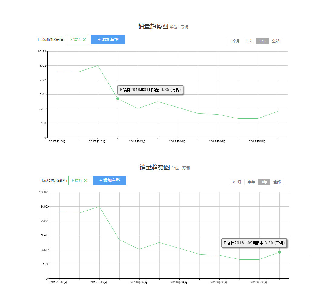 2018年全国汽车产销量数据下滑态势十分明显,福特也不出意外的在截止至9月份的总体销量都呈现下滑,而且在2017-2018年两年间,福特品牌全系车型都没有一个明显的产品更迭或者提升,相反,负面缠身的状况也使得它的市场地位每况愈下。