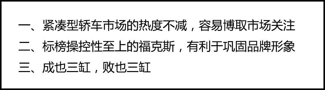 因此长安福特确实需要一款足够重磅的车型拯救品牌于水火,而这次在福克斯身上押宝,也确实是最稳妥,且最容易出成绩的举措;简单来说福克斯在现时推出有两点优势,以及一点全新福克斯在当下市场中的劣势。