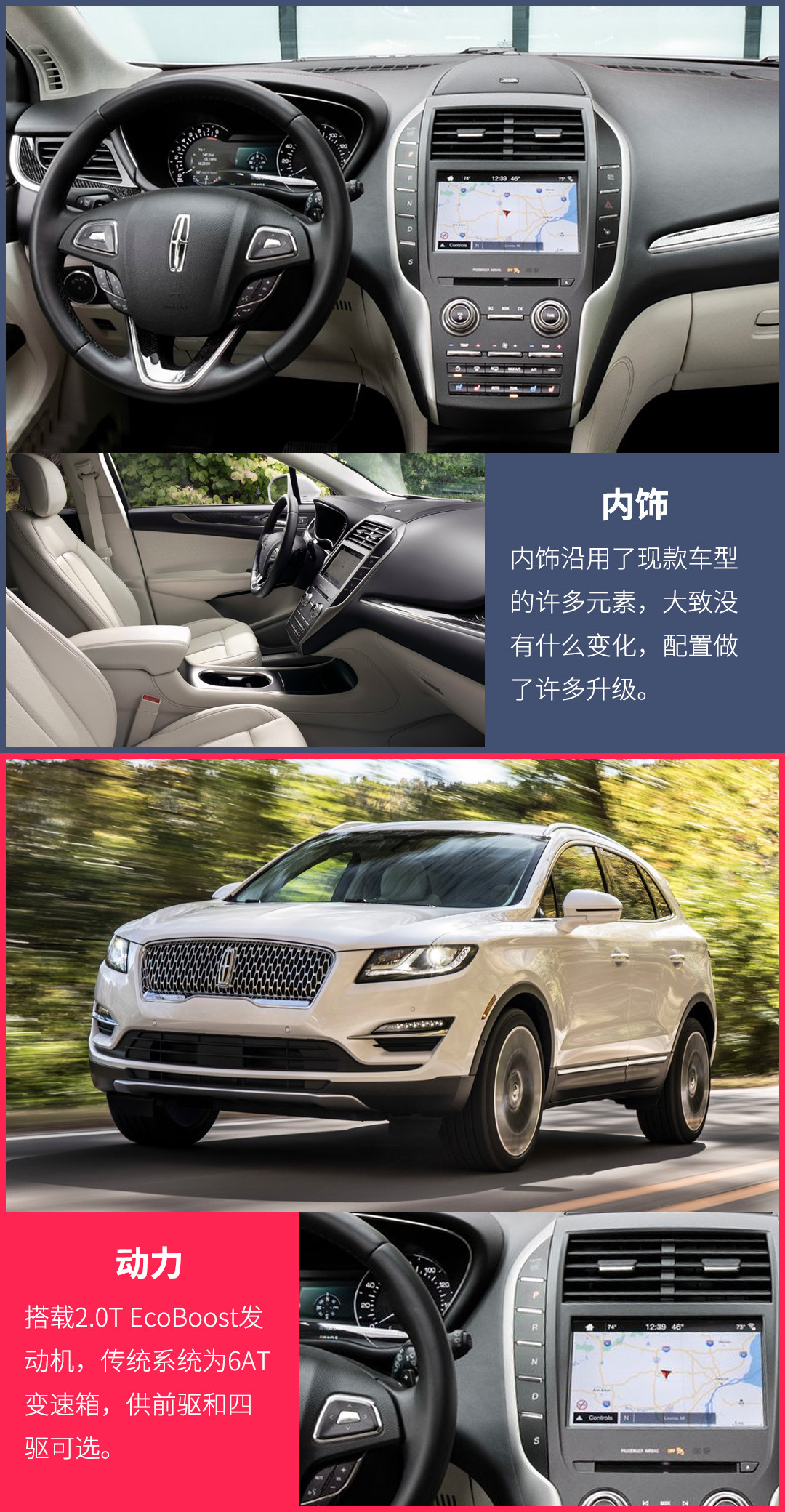 新一代车型主要针对外观和配置做了升级,改变最明显的是前脸部分,换上了林肯家族最新的“星辉中网”,跟上了大陆和领航员的节奏,大灯造型虽然显得粗犷,但内部的日间行车灯又凸显了几分精致感。车身侧面和车尾的变化相对较小,贯穿式的尾灯当然也没有缺席,还有新的轮圈样式也更具质感了。