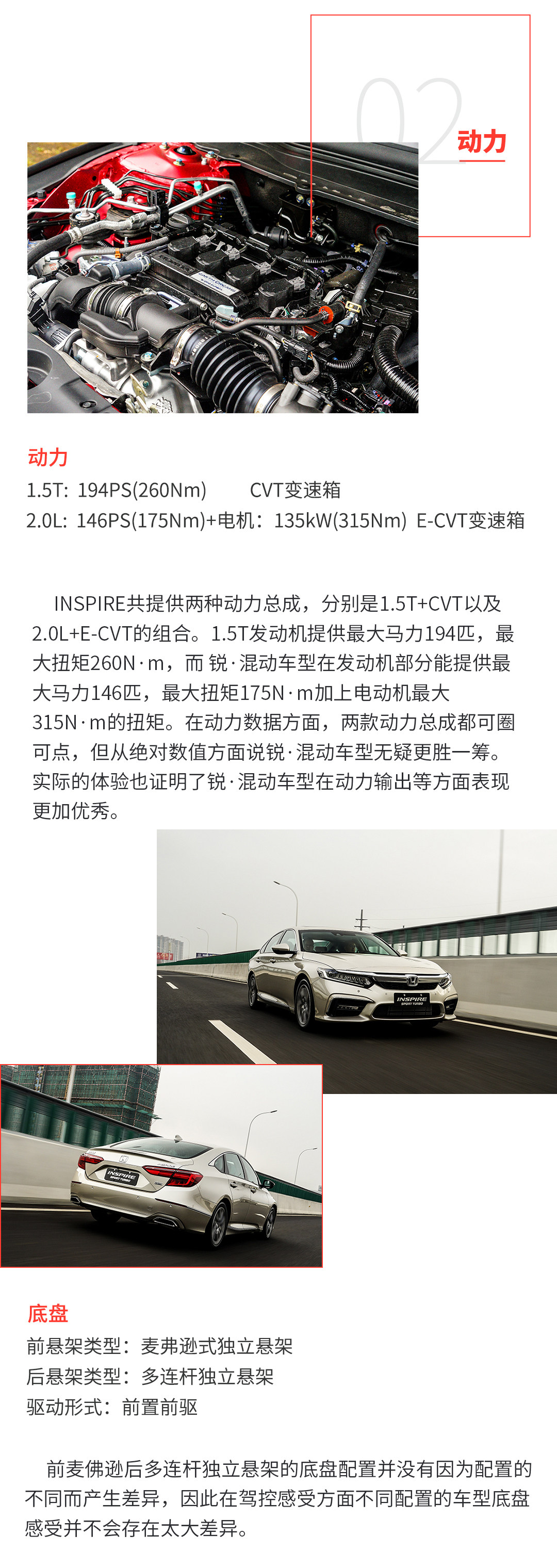 小结:作为东风本田最新旗舰轿车,INSPIRE做到了商务与运动的均衡,整体表现可圈可点。相比于底盘的表现,INSPIRE运动感差异具体表现在不同动力总成的动力输出表现,混动版有了电动机的辅助让车辆拥有更敏锐的加速感受,同时燃油经济性也得到提高。燃油版车型跟混动版车型还是要按需选择。