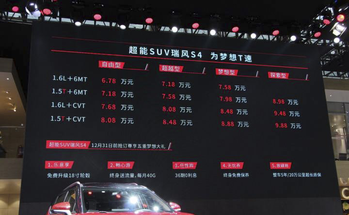 瑞风S4的主要竞品车型会是长安CS35PLUS以及吉利缤越等国产SUV车型。但这也是两款新车型,所以未来市场表现会怎样,现在还不好说。只是面对强势的对手,瑞风S4想抢占市场得先给出惊喜价格,将消费者的目光吸引过来,显然这一步已经基本做到了。